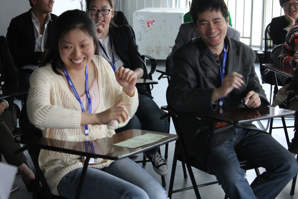 活動主持人金磊和陳點點正在講解游戲規則