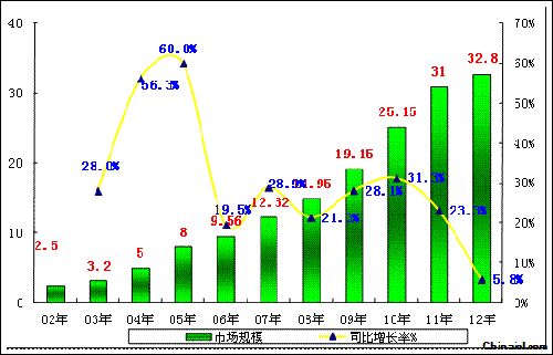2013是十二五計劃承上啟下的一年,水地源熱泵迎來全面發展的一年。2012年,水地源熱泵行業發展受到了宏觀經濟環境的影響,增長速度繼續下滑。據統計,2012年國內水地源熱泵銷售規模為32.8億元,同比增長了5.81%。