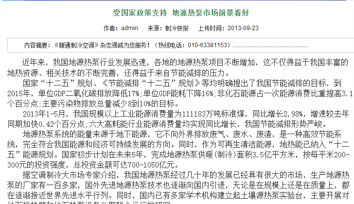 近年來,我國地源熱泵行業發展迅速,各地的地源熱泵項目不斷增加,這不僅得益于我國豐富的地熱資源、相關技術的不斷完善,還得益于來自節能減排的壓力。